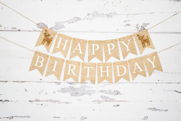 Happy Birthday Personalized Deer Banner | Woodland Party Decor