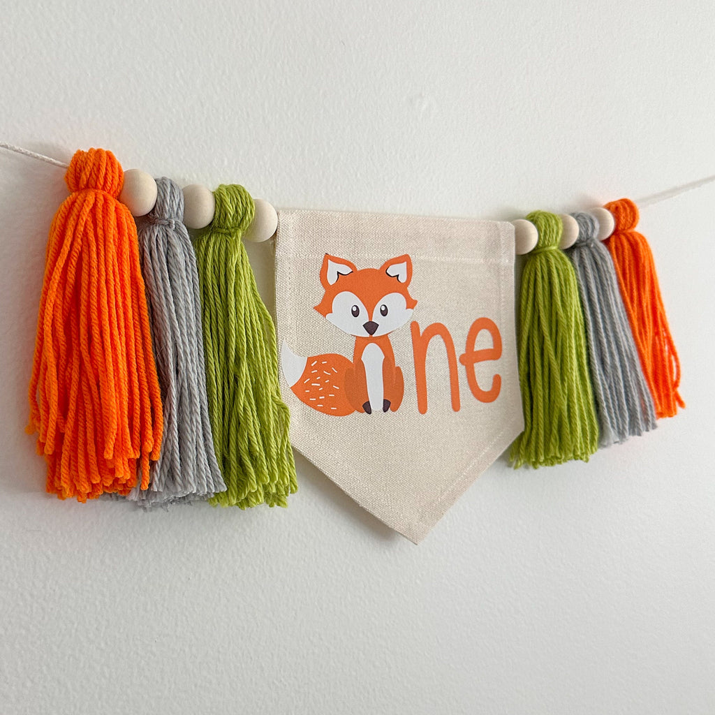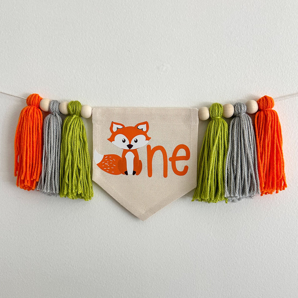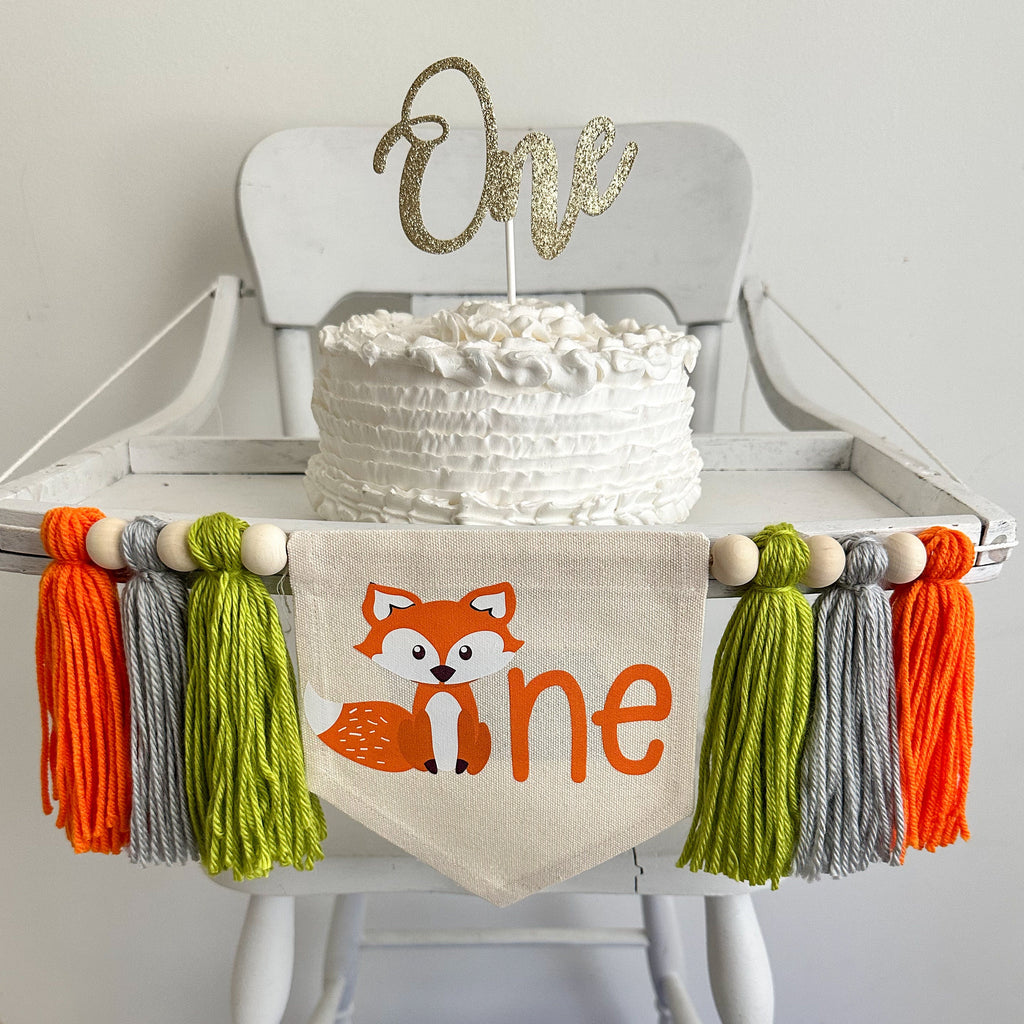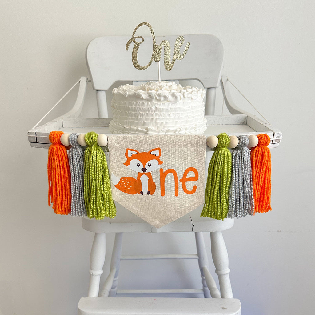 Fox 1st Birthday Decorations | Woodland High Chair Banner | Forest Animals First Birthday Sign