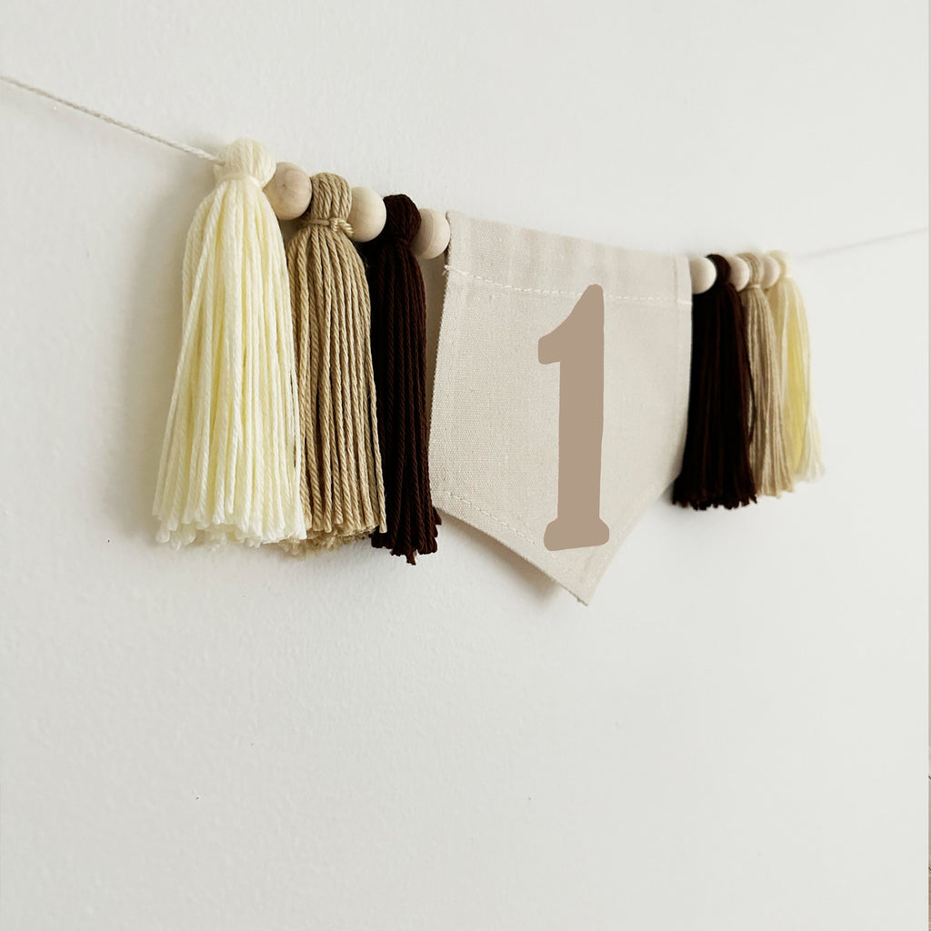 1st Birthday High Chair Banner | Neutral First Birthday Party Decorations | Boho Yarn Tassel Banner