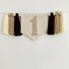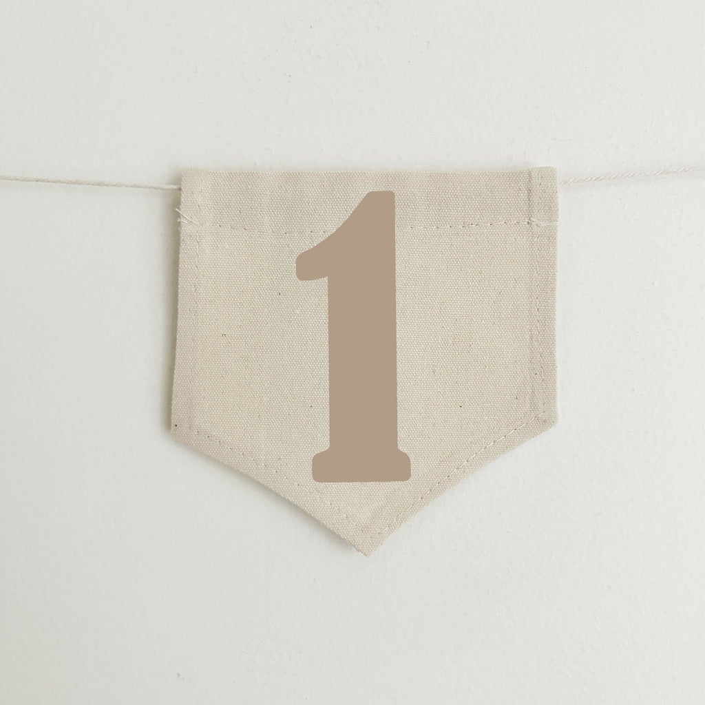 The canvas center flag has a large tan number 1 which measures approximately 5 inches in height. It has one each of brown, tan and cream tassels on either side.