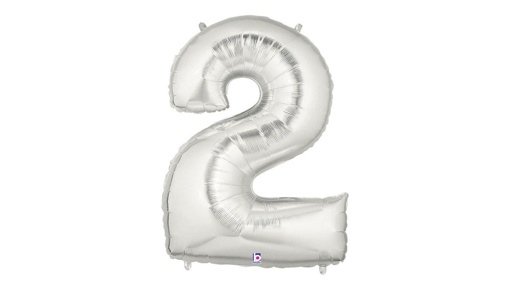 Large Silver 2 Foil Balloon, perfect for a 2nd birthday decoration or a 2nd anniversary. Add to other numbers to make an age. This gold foil number 2 balloon measures a 40 inches. Start your party celebrations right with this jumbo two balloon number, makes a great birthday photo prop.