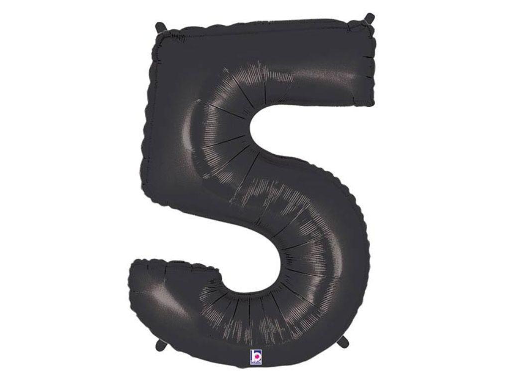 Large 5 Black Foil Balloon, perfect for a 5th birthday decoration or a 5th anniversary. This black foil 5 balloon is very large measuring 40 inches when inflated. Start your party celebrations right with this jumbo five balloon number, makes a great birthday photo prop. Inflate with helium or air.