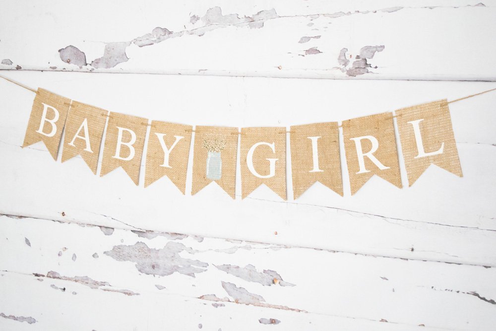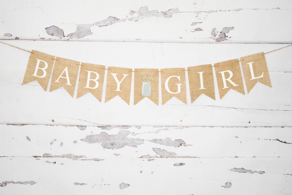 Mason jar baby shower decor, Mason jar gender reveal banner. This banner is for a girl baby shower or gender reveal party. Elegant and beautiful, this Baby Girl announcement banner is perfect for a southern charm-themed or backyard baby shower.