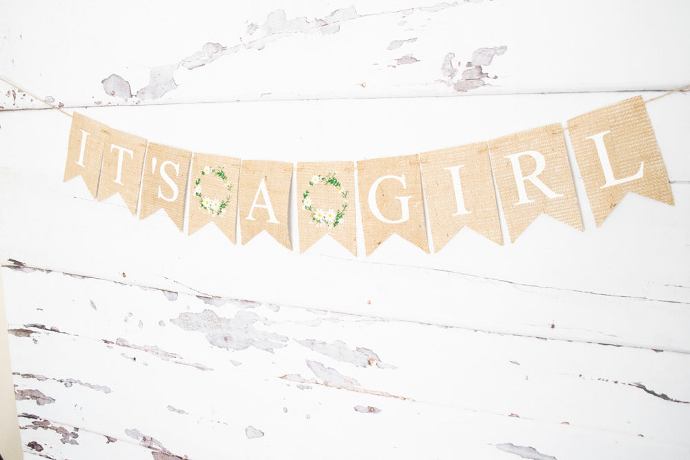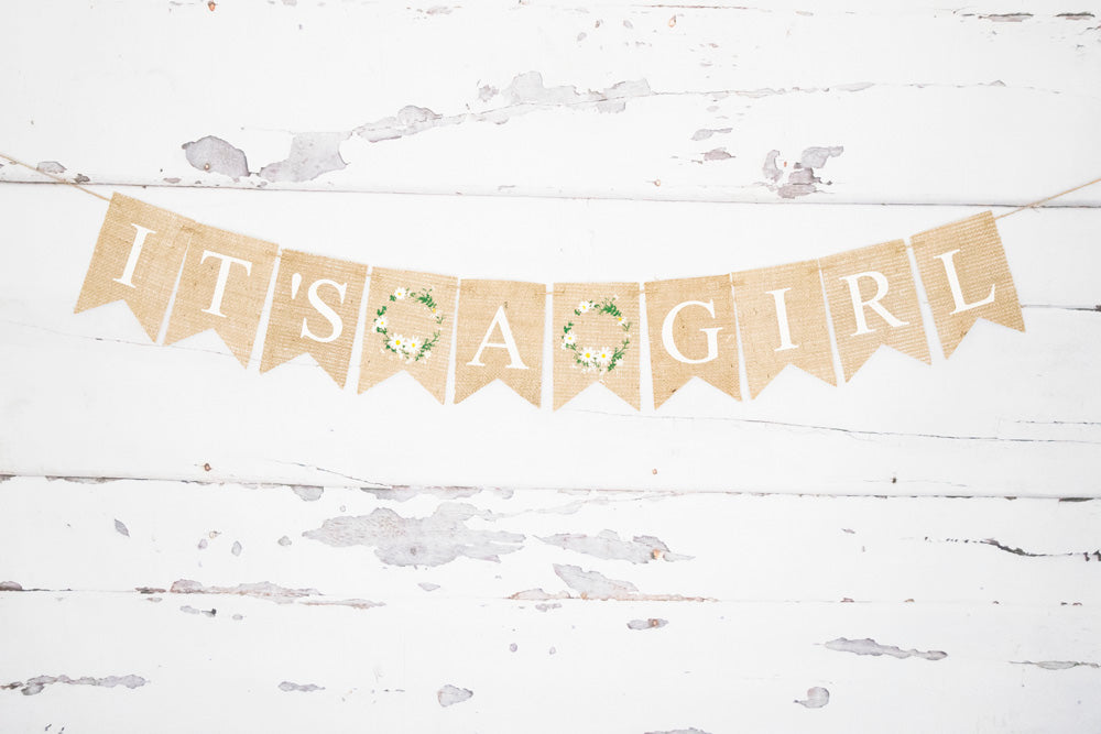 Floral Wreath Shower Decoration. A floral banner to announce your baby. A gorgeous It's A Girl banner, complete with delicate floral wreaths.