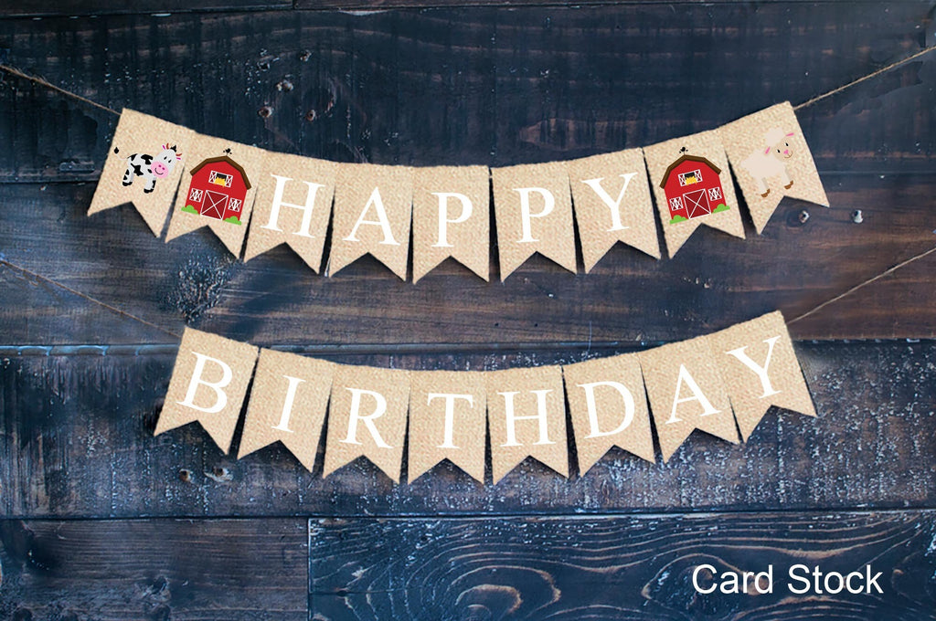 Barn Theme Happy Birthday Card Stock Banner | Farm Birthday Party Decorations