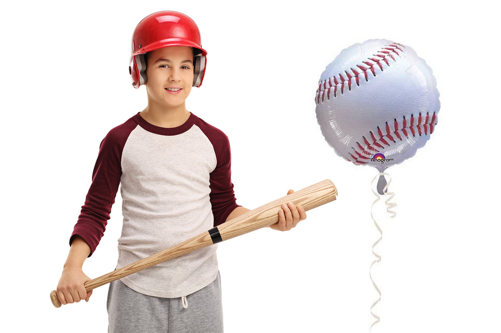 A 17" Baseball Balloon. This baseball party decoration is perfect for a sports birthday party or MLB event. Great as a photo prop for a baseball themed party.