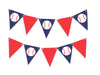 Add this baseball banner at your next sports party. These triangle pennants in navy and red with a baseball on alternating flags will look stunning at your celebration.