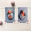 Full banner: This 1st birthday photo banner comes with 13 cards from newborn through 12 months. The set also includes a FREE "one year" card and 2 bonus theme cards for a total of 16 cards. Each card measures 5" x 7" each and has 2 holes at the top for stringing. A 110" piece of white twine and a needle is included for stringing. Also included is a piece of double sided tape to hold your 4" x 6" photos.