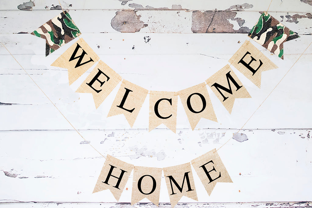 Camouflage Welcome Home Banner. Army Military Homecoming Party Decor. Welcome your soldier home with this beautiful banner. Great for a homecoming party for your favorite soldier.