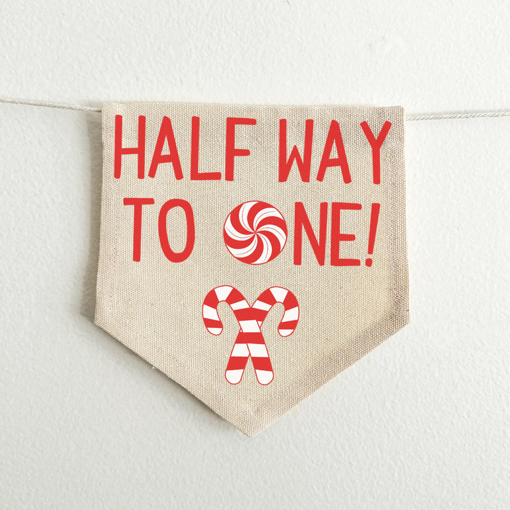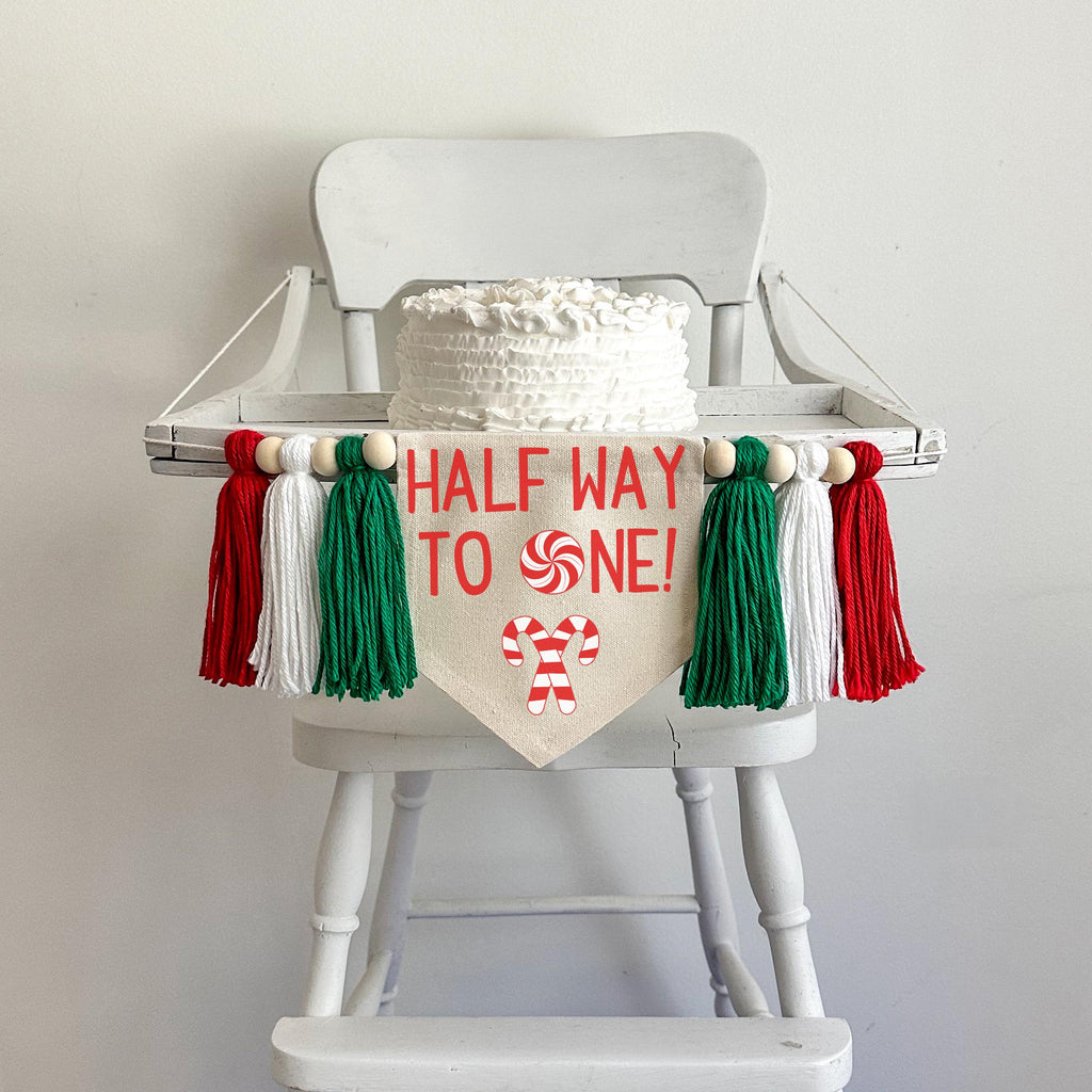 Christmas Half Birthday Party Decorations | Halfway to One Holiday High Chair Banner | Peppermint 6 Month Sign