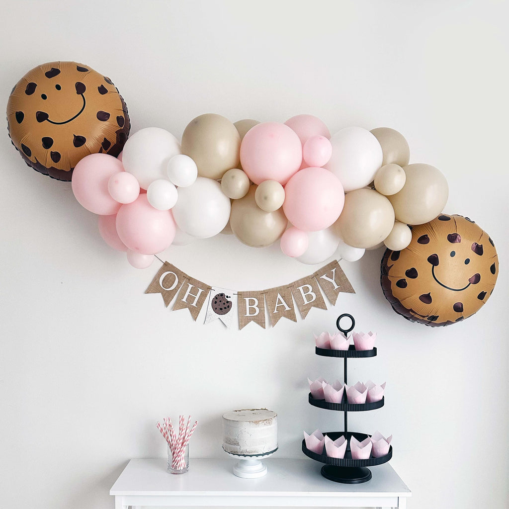 Celebrate your little "cookie" on the way with our Pink Cookie Baby Shower decor! This charming collection features pastel pink, white and tan balloons, cute cookie-shaped balloon accents, creating the sweetest setup for your baby shower. Perfect for a cookie-themed baby shower, baby sprinkle, or gender reveal, this delightful decor adds a cozy, whimsical touch to your celebration. Whether you're hosting at home or in a venue, these baby shower decorations will make your event picture-perfect.