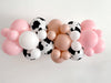 This Pink Cow Print Balloon party decor is great for a cowgirl party, cow party or a farm party theme! This gorgeous pastel pink and cow print balloon garland is the perfect backdrop for a cow or farm party. This garland measures 3ft, order 2 to extend to 6ft