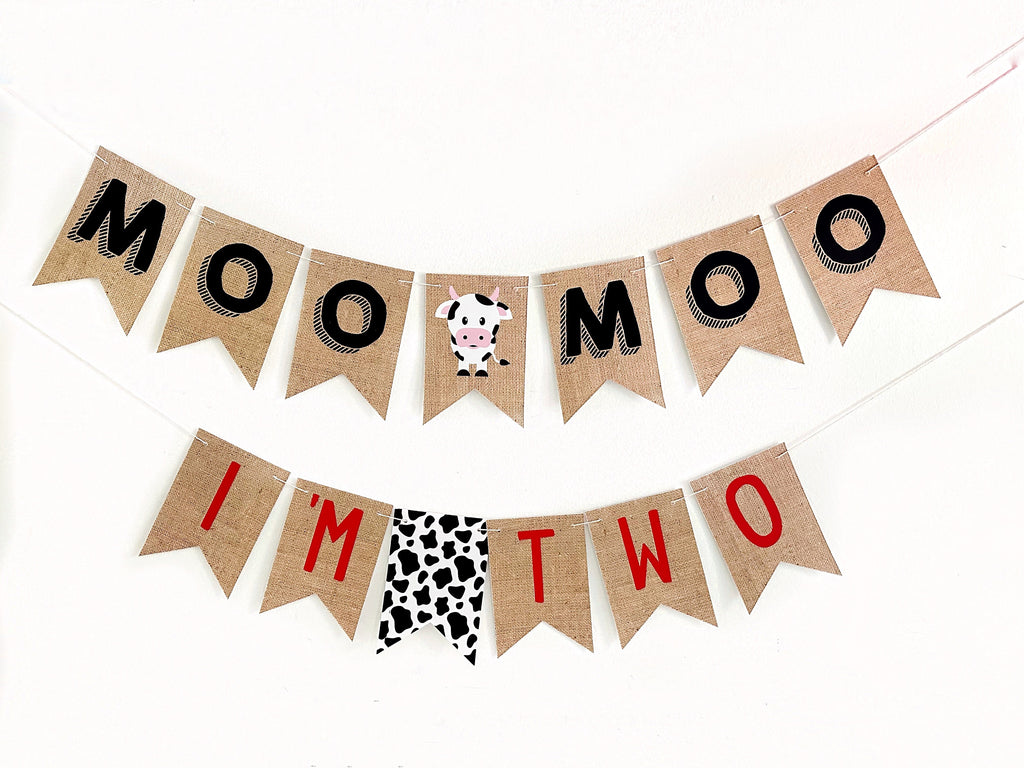 Farm 2nd Birthday Party Decorations | Moo Moo I'm Two, Cow Second Birthday Party