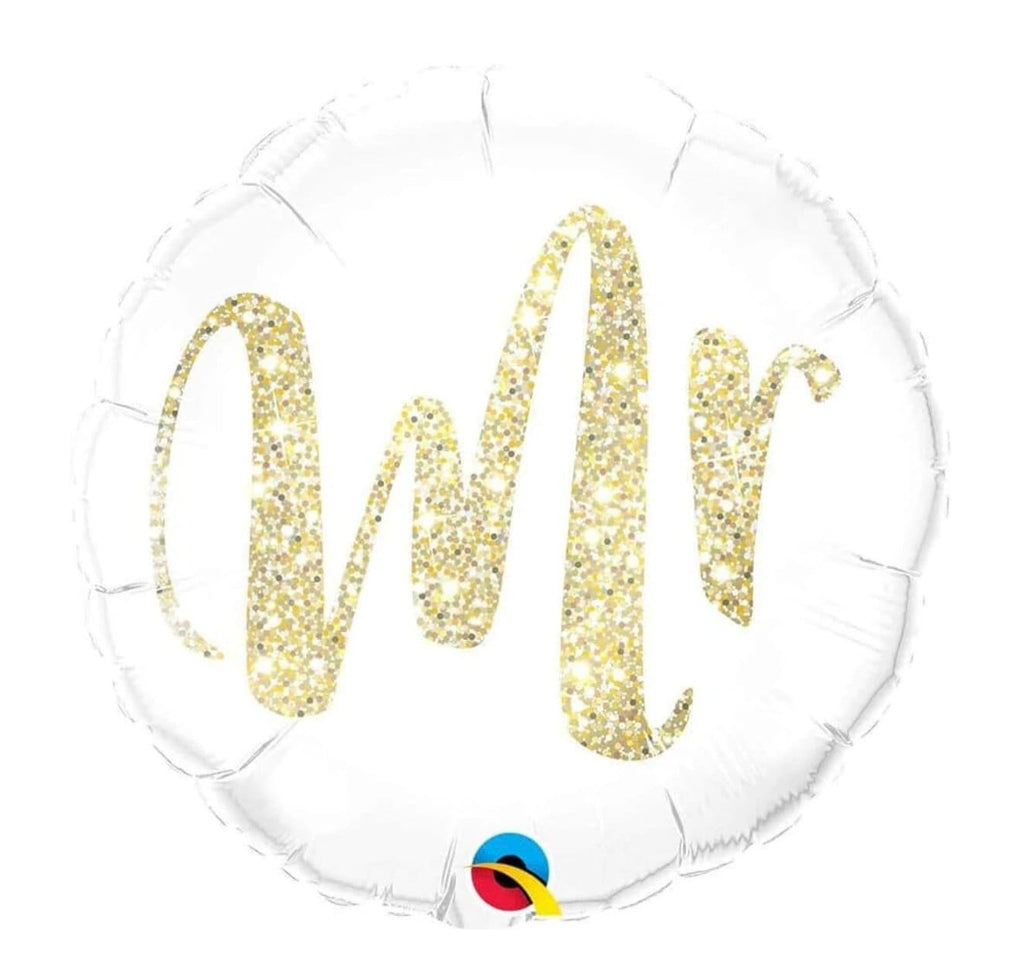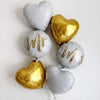 This Mr. & Mrs. Engagement balloon collection is perfect for celebrating an engagement, bridal shower, bachelorette party or wedding! The bright glittering gold and white Mr. & Mrs. balloon pairs perfectly with gold and white hearts. Perfect for decorating a bachelorette party hotel room or event space. Also great for engagement parties! This set includes one 18 inch Mr. balloon, one 18 inch Mrs. balloon, two 18 inch gold heart balloons and two 18 inch white heart balloons.