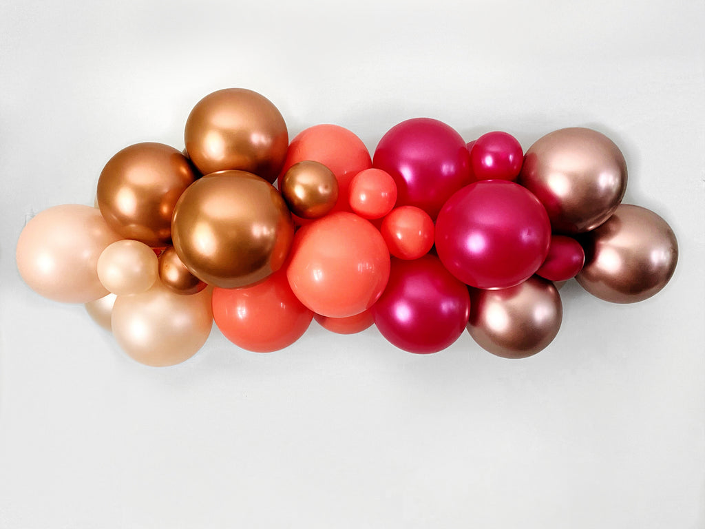 A beautiful fall garland in copper and pinks. A metallic foiled Hello Fall banner with a matching leaf balloon and mini balloon garland. Great for any fall party. Purchase individual pieces or the full set. See what's included below