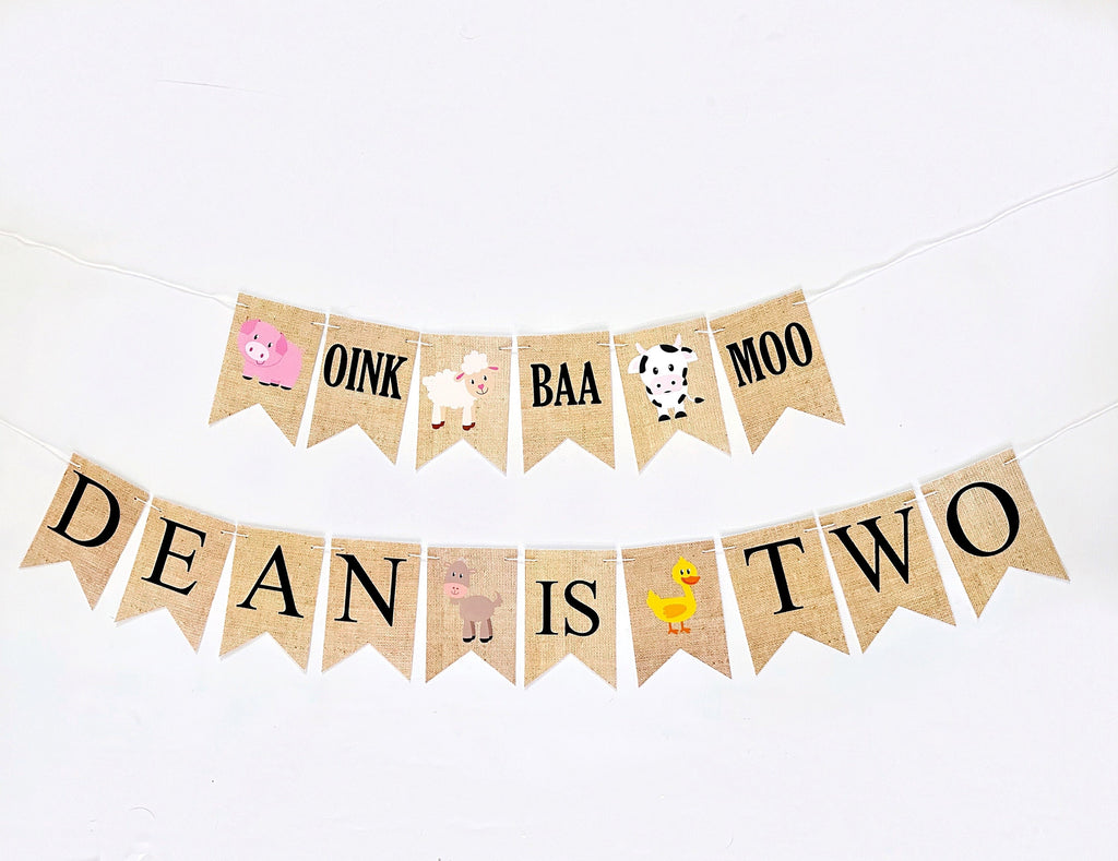 Introducing our "Oink Baa Moo, Custom is Two" Customized Banner, a delightful way to celebrate your little one's second birthday with a farm-themed twist! Featuring charming farm animal illustrations and vibrant colors, this personalized banner adds a touch of whimsy to the celebration.
