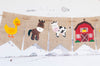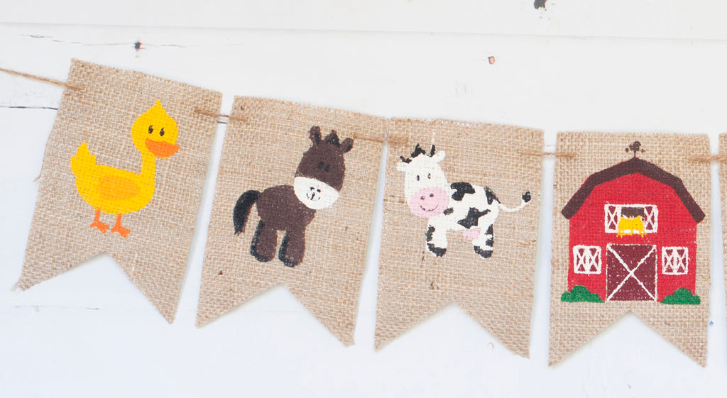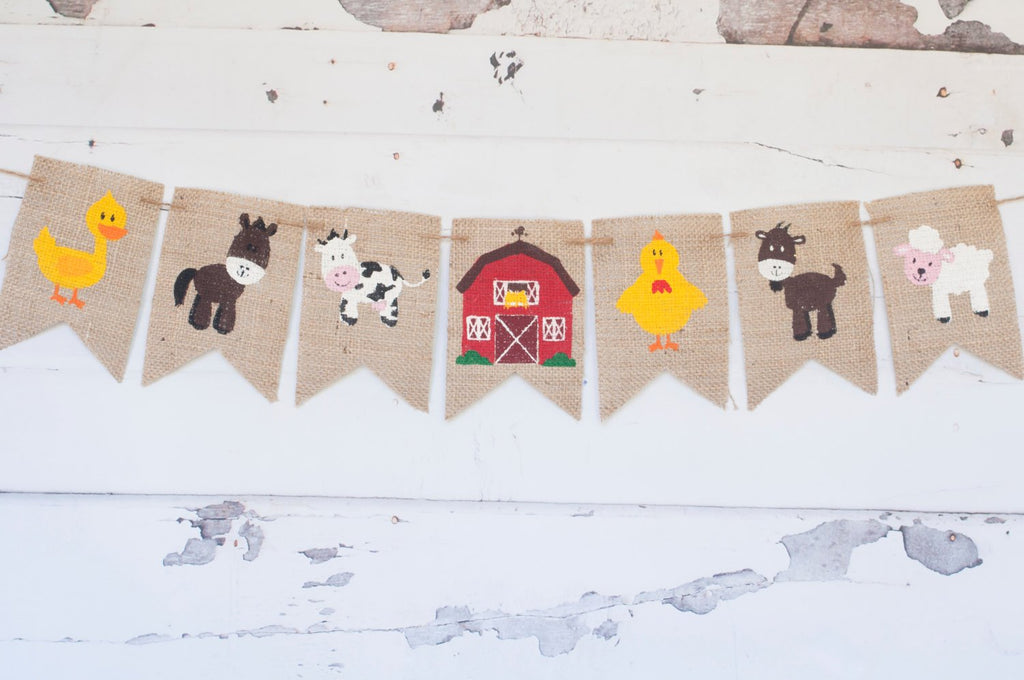 Farm Party Decor. Are you ready for a barnyard bash? Your farm birthday party won't be complete without this farm animals banner, featuring all your favorite farm friends, a cow, a duck, a sheep, and a rooster. This farm banner is perfect for a farmhouse party or baby shower.