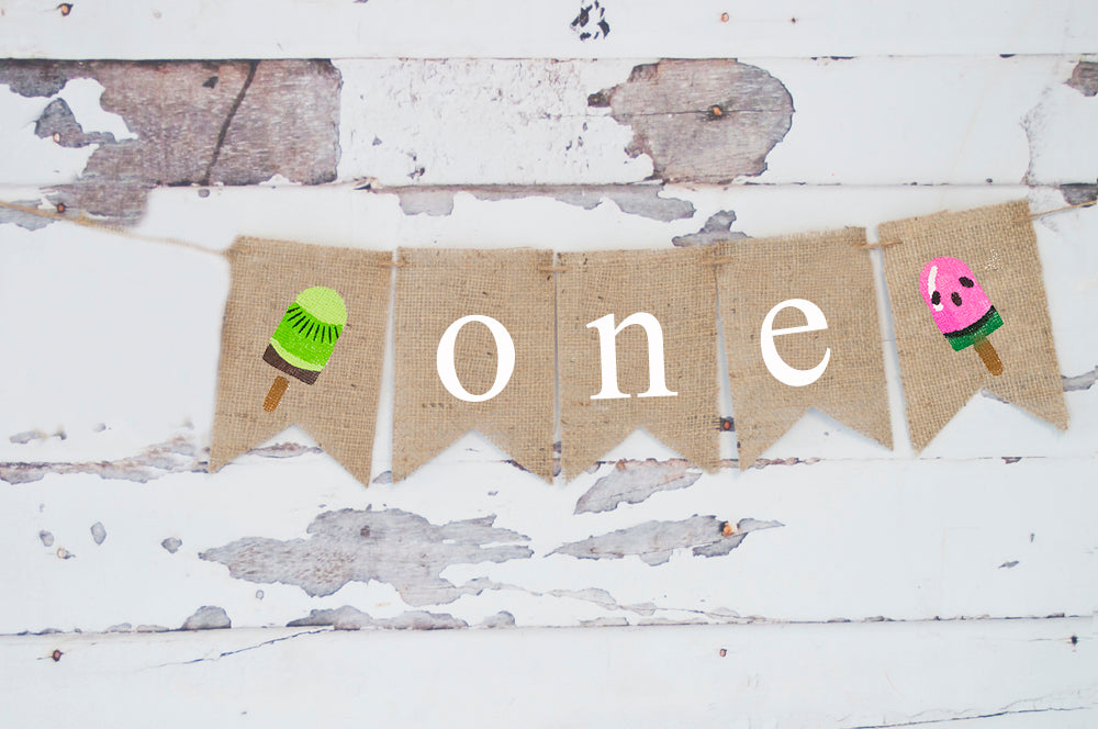 Ice Cream First Birthday Decor. This one of a kind garland is perfect for your little Popsicle whose turning one. Colorful popsicles / ice creams are then hand painted and the celebration of turning one with first birthday decor like this rustic, ice cream 1st birthday banner.