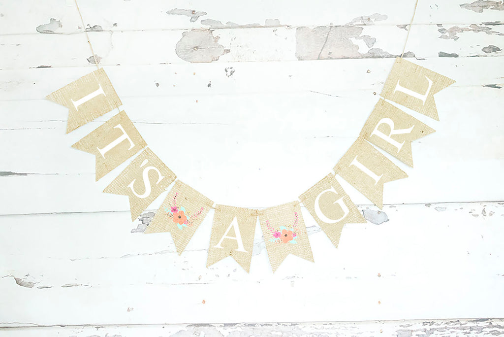 Boho baby shower decor, Floral Baby Shower Decoration. A floral-themed banner to announce your little flower. A gorgeous It's A Girl banner, complete with a wreath or bouquet of wildflowers hand-painted in mint, rose and coral with a touch of yellow.