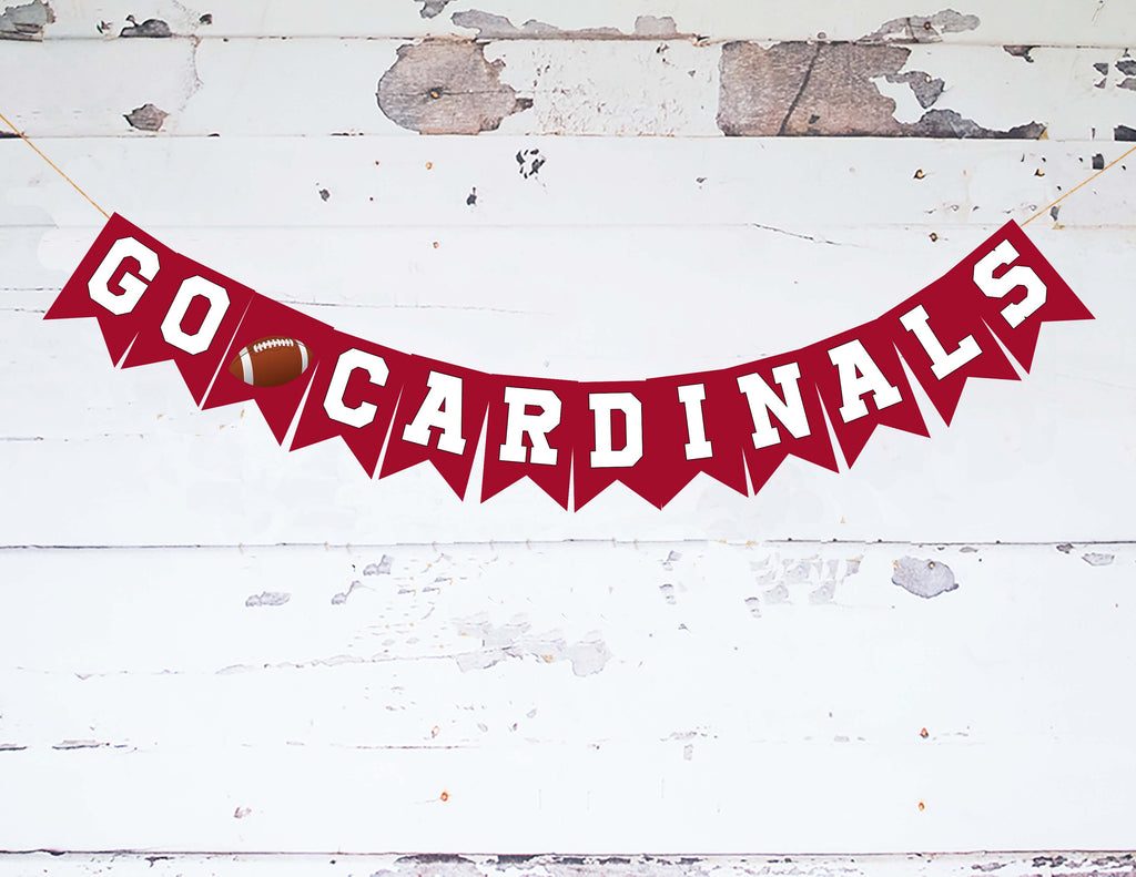 Football Party Decor. It's Game Day, score a touchdown with this Cardinals football banner, perfect for your football party. You invite the guests and we'll make the decorations. This cardstock banner with the Cardinals colors makes the perfect football decor.