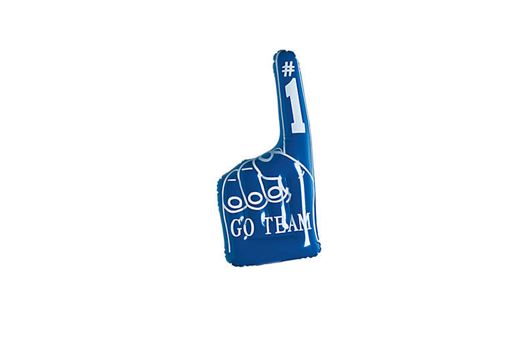 18" Go Team Hand Balloon. With the words "Go Team" and "#1" this football decoration is perfect for a sports birthday party, Super Bowl or a Tailgate. Large enough as a photo prop for a football themed party