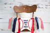 FINAL SALE! BaseballHalf Birthday Party Decor, perfect for a baseball themed photo prop. This highchair banner features a white background with red baseball stitching and the words "HALF WAY TO ONE". Fun fabric ties are added to coordinate with this red, blue and white theme for your little rookie.