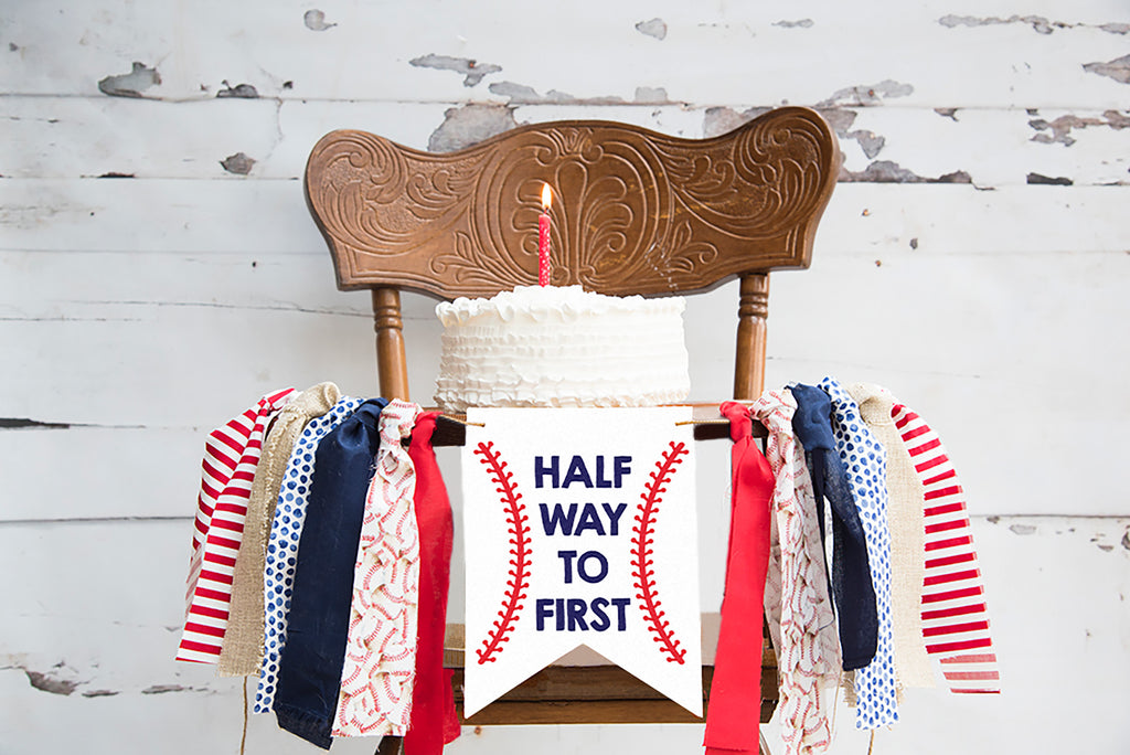FINAL SALE Halfway to First Banner | Baseball Half Birthday Decor | Baseball Highchair Banner | Baseball 1/2 Birthday Banner