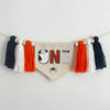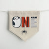 The canvas center flag has a spooky ONE design accented with a mummy, spider and ghost in the O. It has one each of orange, white and black tassels on either side.