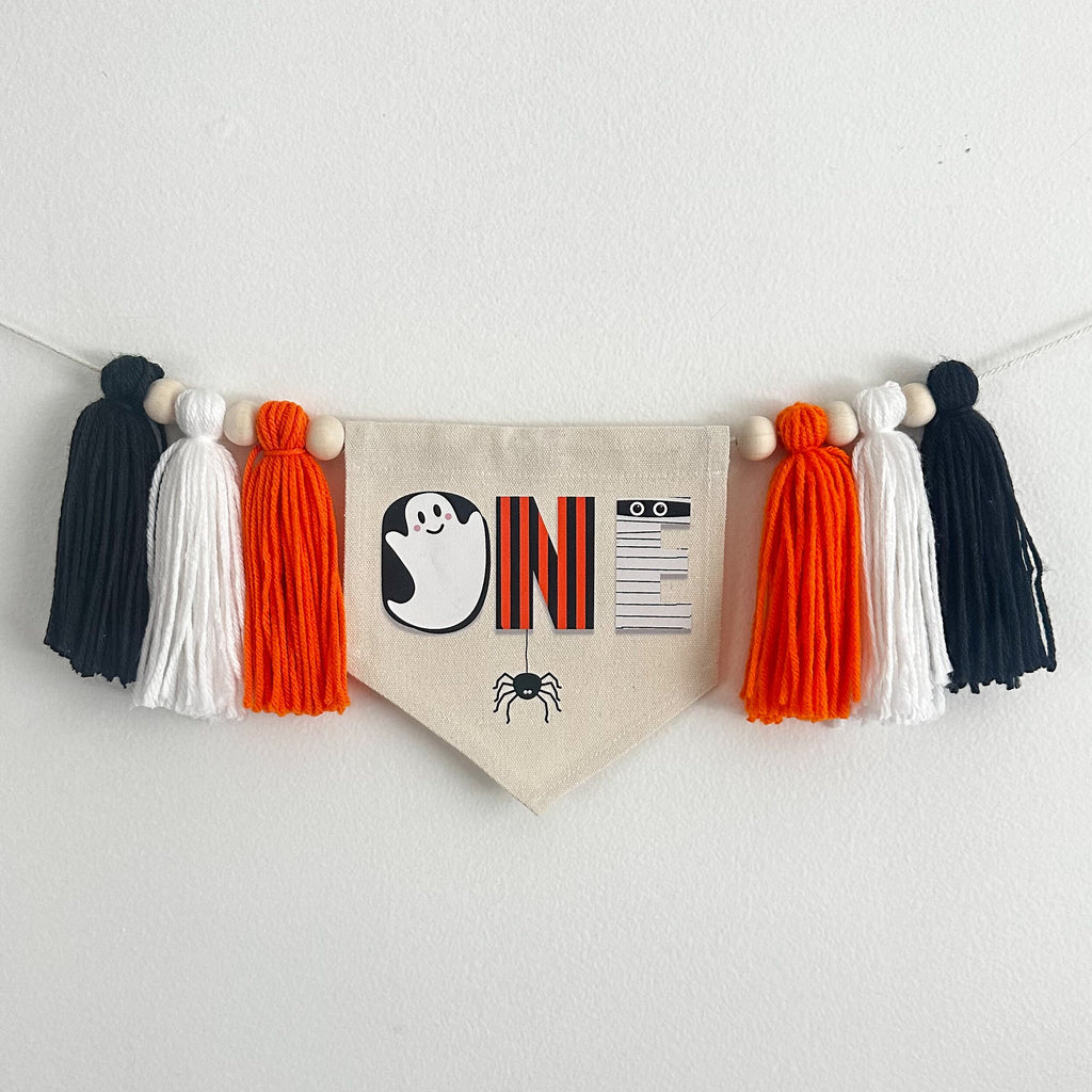 Halloween 1st Birthday Party Decorations | Ghost First Birthday | Spider High Chair Banner