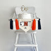 Highchair - Secure the banner by using the double sided tape included on the back of the flag. Remove adhesive backing by peeling and then stick in place. Use the included string to tie to your high chair.
