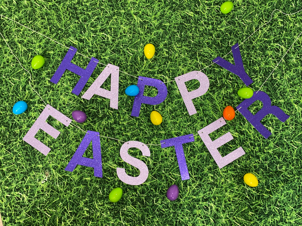 This Happy Easter banner will be perfect for your Easter party. This banner is lavender & purple for the perfect Easter decor.  Each letter is cut from non flaking heavy glitter card stock.   Hang on a mantel or above a table