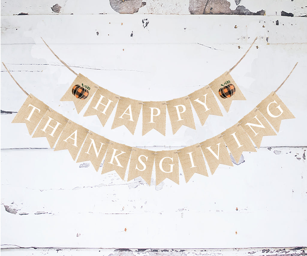 Happy Thanksgiving Banner | Orange & Black Plaid Pumpkins | Fall Decor