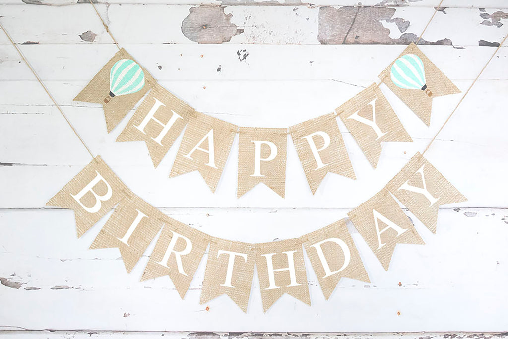 Birthday Decor, Hot Air Balloon Happy Birthday Banner