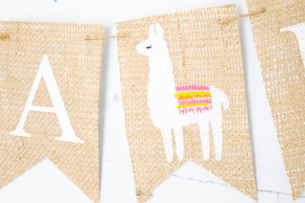 This llama "it's a boy" banner with will be adorable at your baby shower or gender reveal. The words It's A Boy are hand painted in white with the colorful, detailed llamas between them.