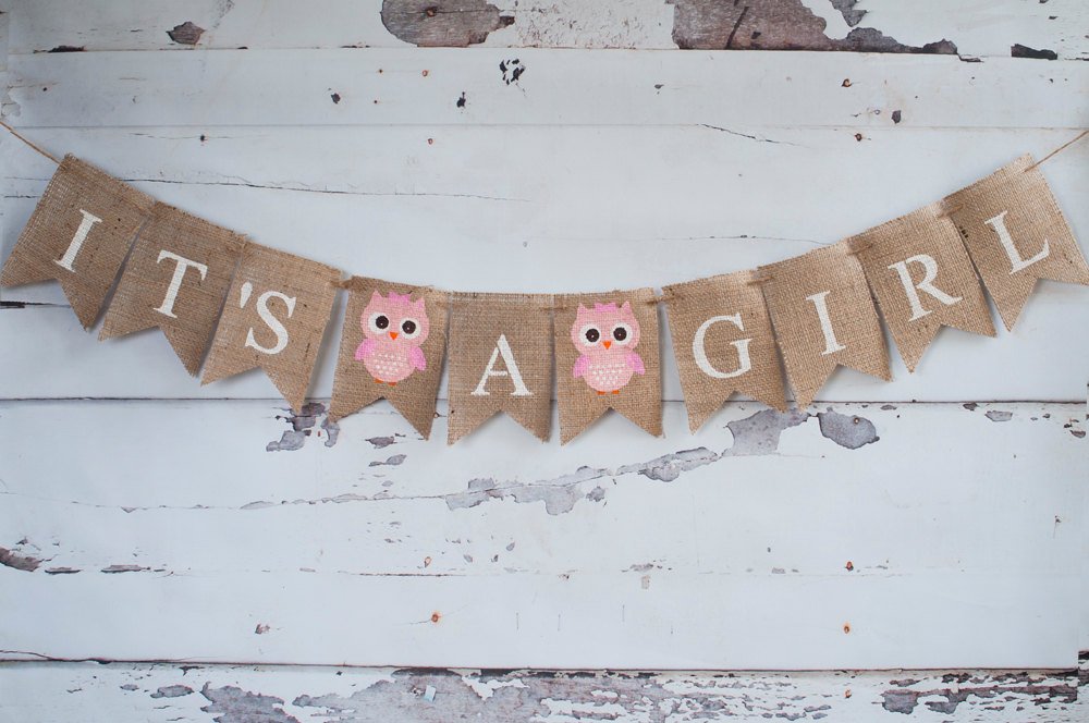 Owl Baby Shower Decor, It's A Girl Owl Banner