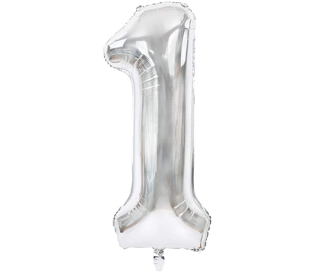 Large Silver One Balloon, 40 inch Silver Foil Number One Balloon, 1st Birthday Balloon