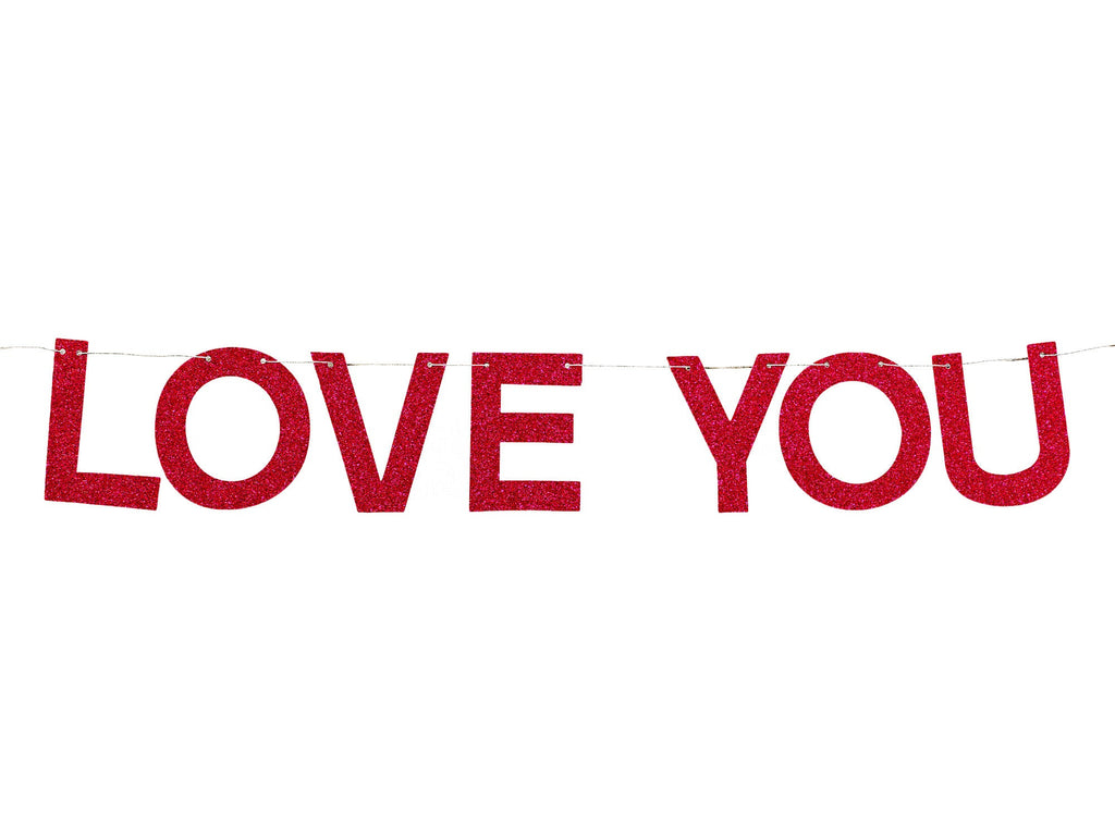 Red Love You Glitter Card Stock Banner | Valentine's Day Decorations