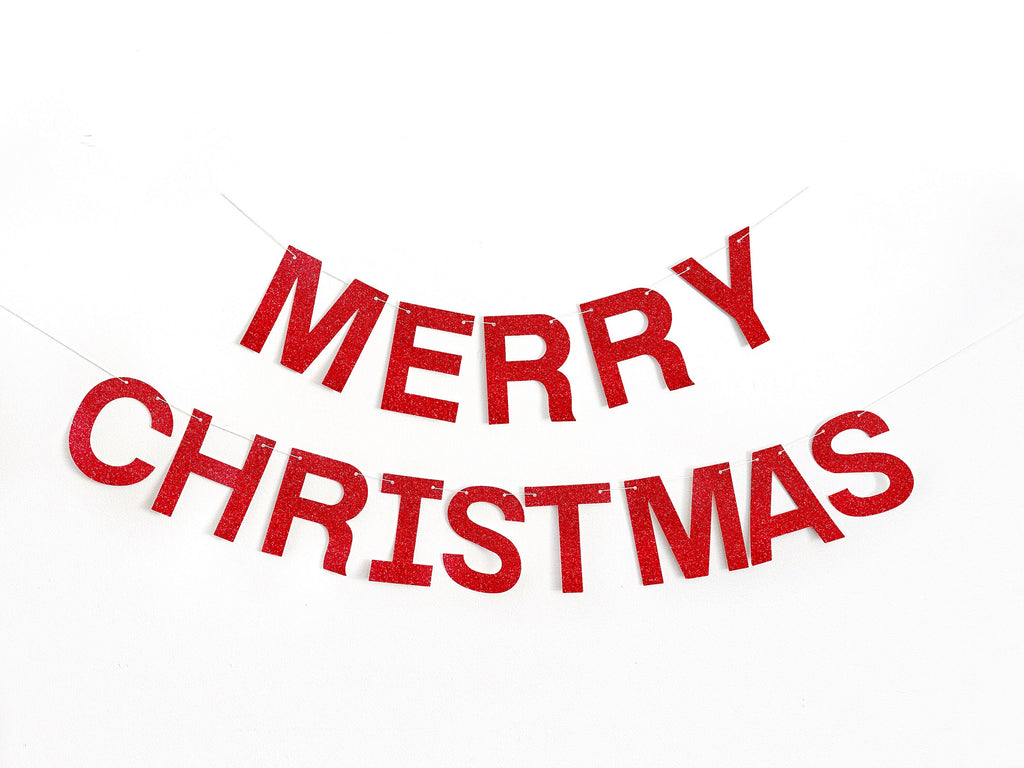 Merry Christmas Glitter Banner | Red Glitter Holiday Sign | Christmas Party Decor