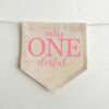 For your little Miss Onederful, this 1st birthday highchair banner is the perfect flag to celebrate a milestone adventure and your little sweetheart's big day. The words "Miss ONE derful" in pink makes this flag a classic for their first celebration. Banner includes 6 tassels in hot pink, white and pink separated by wooden beads. Hang on a high chair or above the cake table and when the party is over hang on the wall as part of a room decoration. This crown cake smash sign makes an awesome photo prop and keepsake.