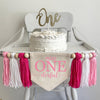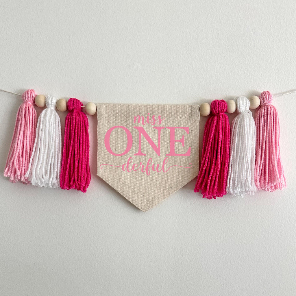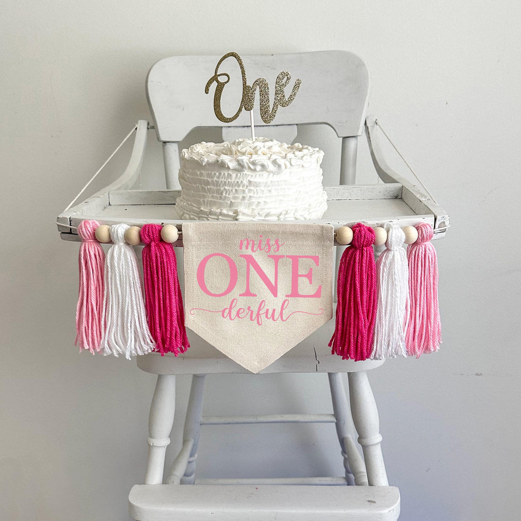 Miss Onederful 1st Birthday Tassel Banner | Crown Highchair Decoration | Pink First Birthday Party Sign