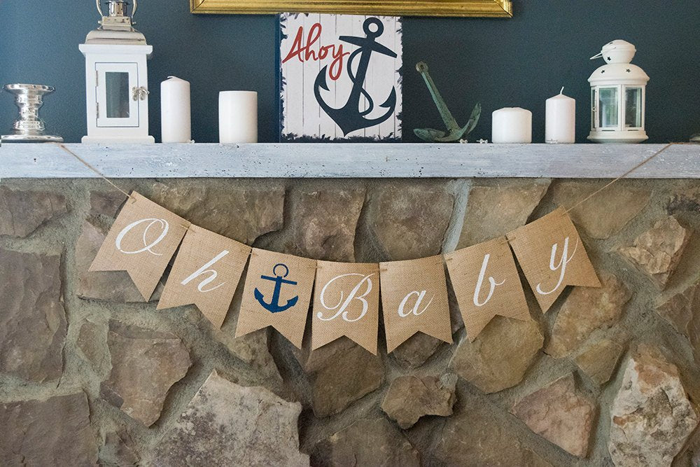 Nautical Baby Shower Decor, Oh Baby Anchor Banner