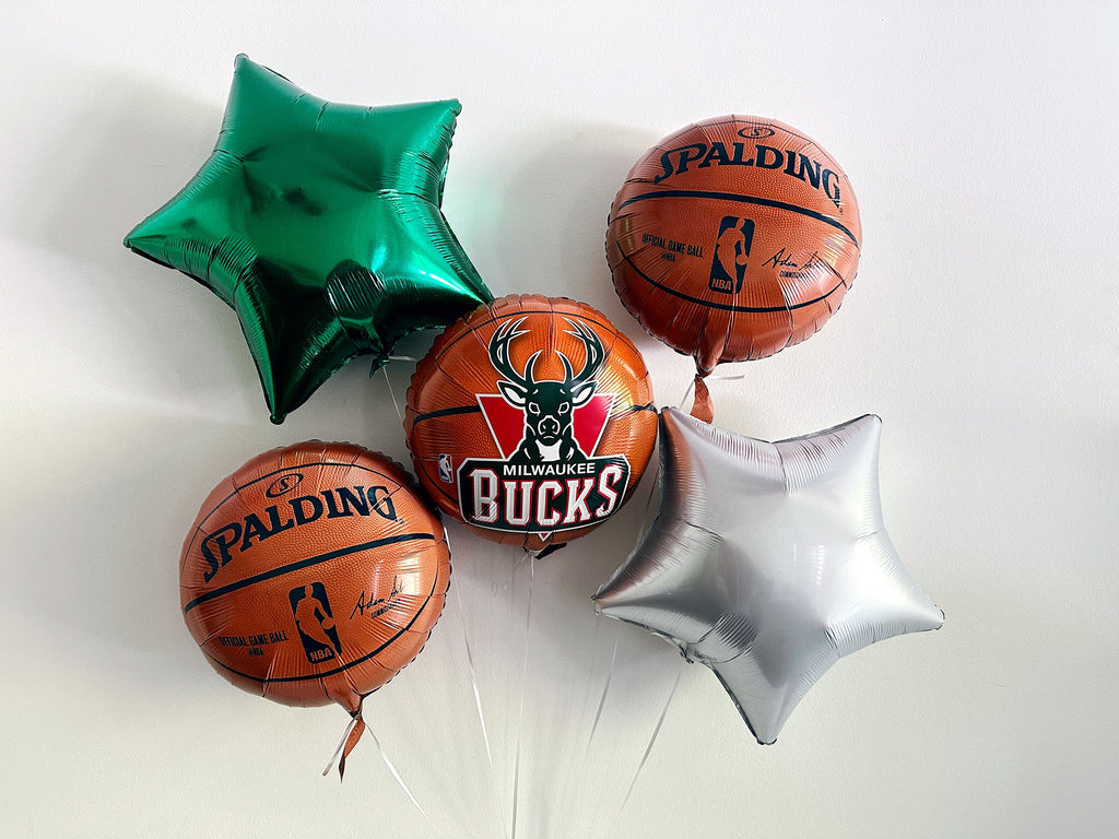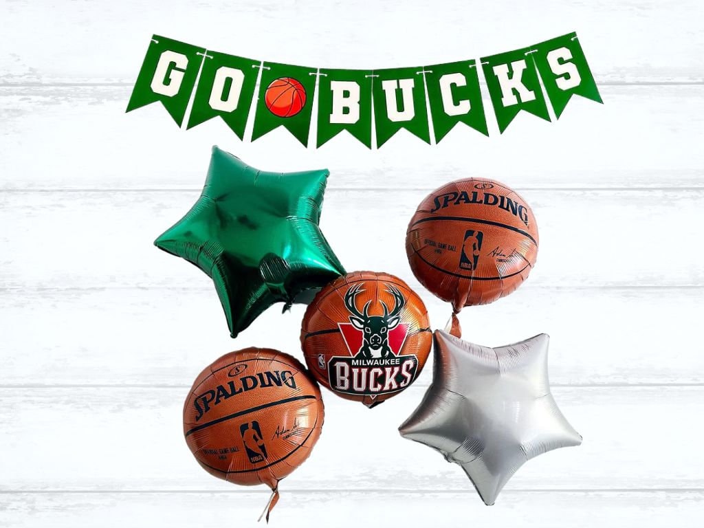 This Milwaukee Bucks Balloon + Banner collection will have you scoring big at your next basketball-themed party! Our NBA balloon and banner collection features high-quality, durable balloons and a vibrant banner that will make your party stand out from the rest.