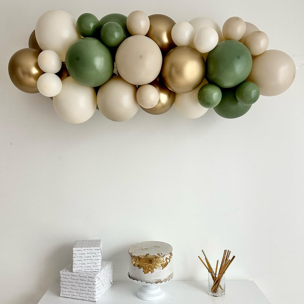Neutral Balloon Garland, Green, Off White, Gold Balloon Garland