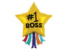A fun and vibrant 36 inch #1 Boss balloon, is the perfect for Boss's Day or a new promotion. Great as part of your Boss's Day or promotion party decoration. This foil Star Shaped #1 Boss balloon measures 36 inches and is perfect for your #1 Boss!