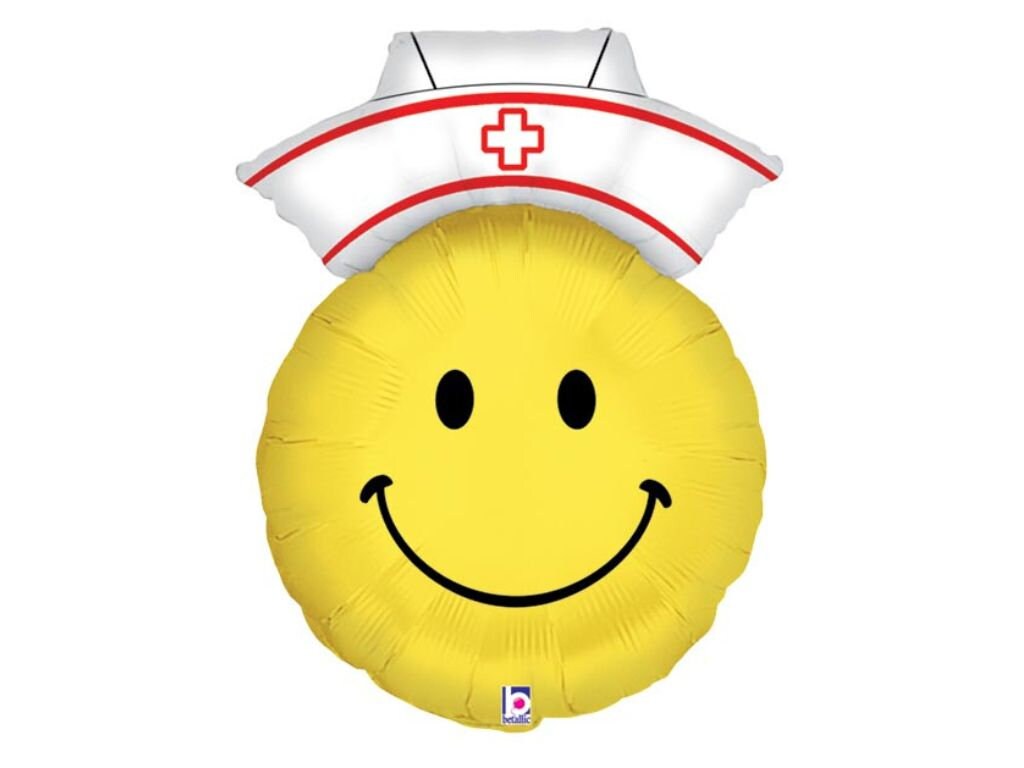 The Smiling Nurse balloon is the centerpiece of this collection, with its bold and bright colors, making it the perfect way to express gratitude for the essential role that nurses play in our lives. The red and white heart balloons complement the main balloon, adding an elegant touch and creating a cohesive look for the collection.