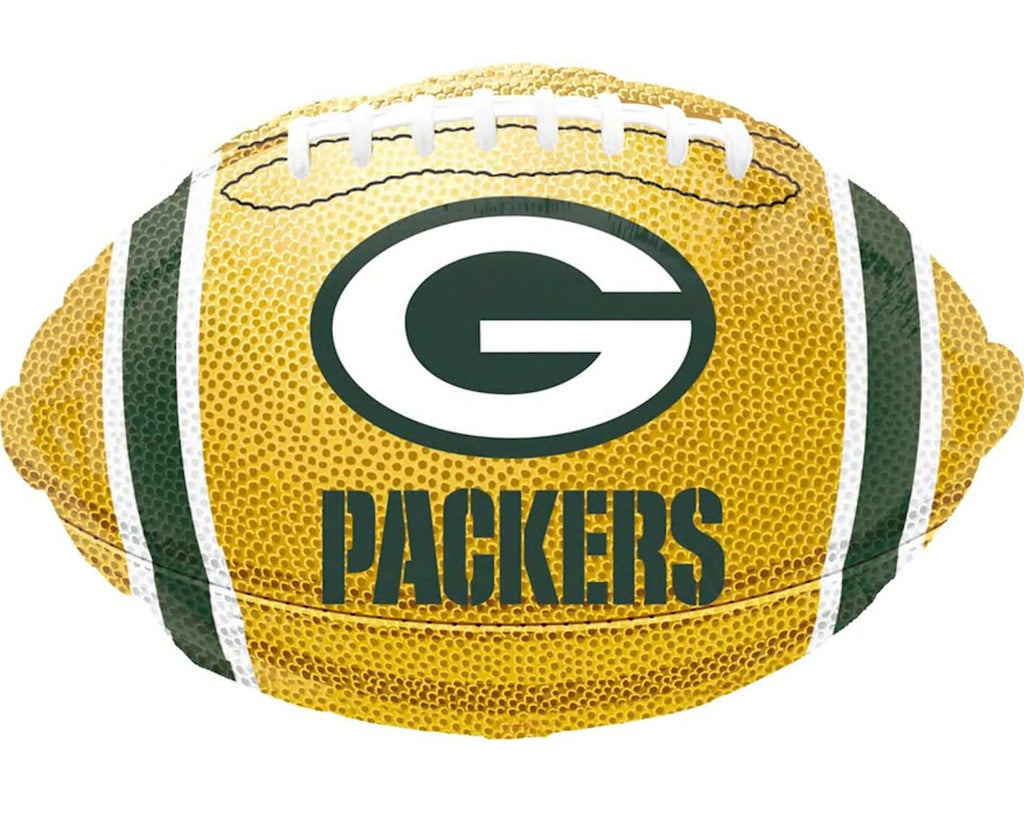 This Packers football balloon bouquet is great for your next football party! With a team helmet, team ball and two bright colored star balloons, this set is the perfect addition to your football watch party. Great for decorating for a football birthday party or team party.