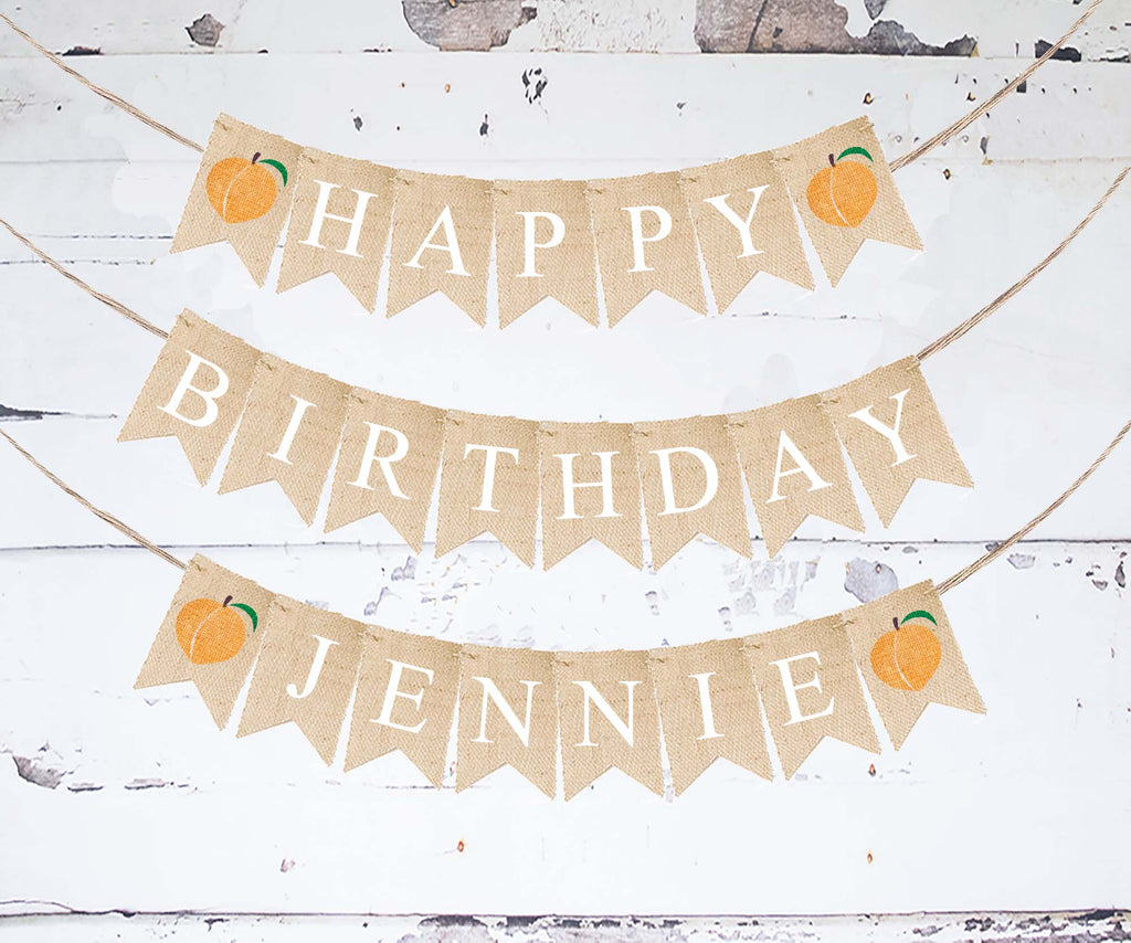 Peach Happy Birthday Personalized Banner | Fruit Birthday Party Decor