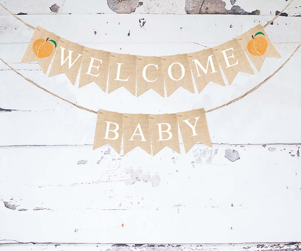 Peach Welcome Baby Banner | Fruit Baby Shower or Gender Reveal Party Decor