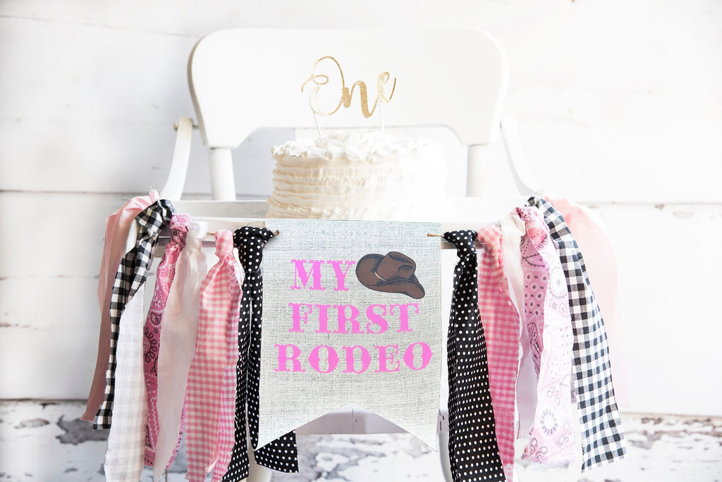 FINAL SALE Pink My First Rodeo Highchair Banner | Western 1st Birthday Decor | Cowgirl First Birthday