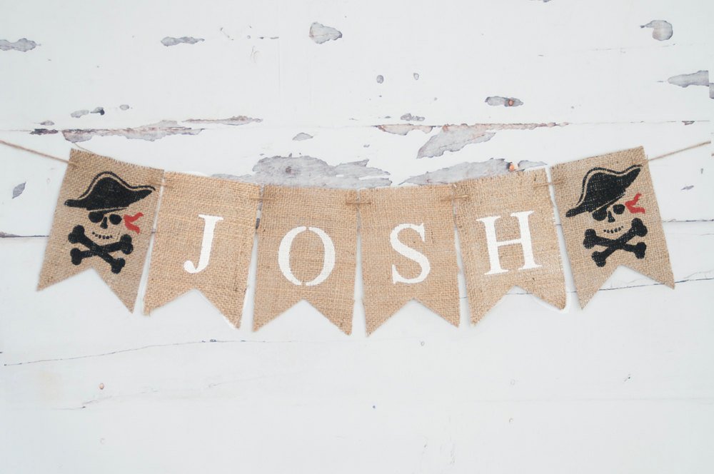 Pirate Party Decor. Shiver me timbers it's a pirate birthday party banner. Captain Hook would be proud of these pirate flags, just add your own custom wording, perfect for a pirate birthday party or Jake and the Neverlands or a Pirates of The Caribbean Party.